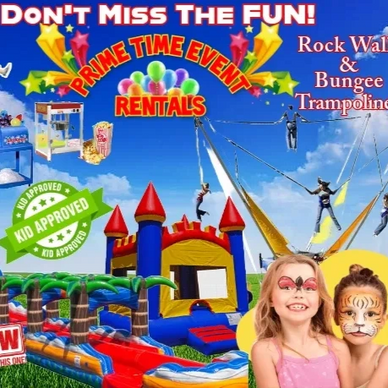 Prime Time Event Rentals is your #1 Choice for All your event and party needs with over 20 years experience in the special event business we truly know what it takes to throw an awesome party and event, with all new cutting edge equipment and entertainment No event is to big or to small, we do it all, from Bounce House and Water Slide with some of the best and biggest inflatables in the state of Florida to amazing attraction and mechanical rides like Zip Lines, Rock Wall, Bungee Jumps and Carnivals Rides! Serving The Bay area and its surrounding cities like Sarasota, Bradenton, Brandon, Tampa, Lakewood Ranch, Venice, Parrish, Myakka City, Arcadia, Wachula, Siesta Beach and North Port.